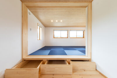 リビングの一角を小上がりにすることで、下部を収納として活用できます。