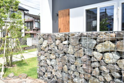 - 玄関まわりは、植栽で視線をやわらげながらも隠さないデザインに。