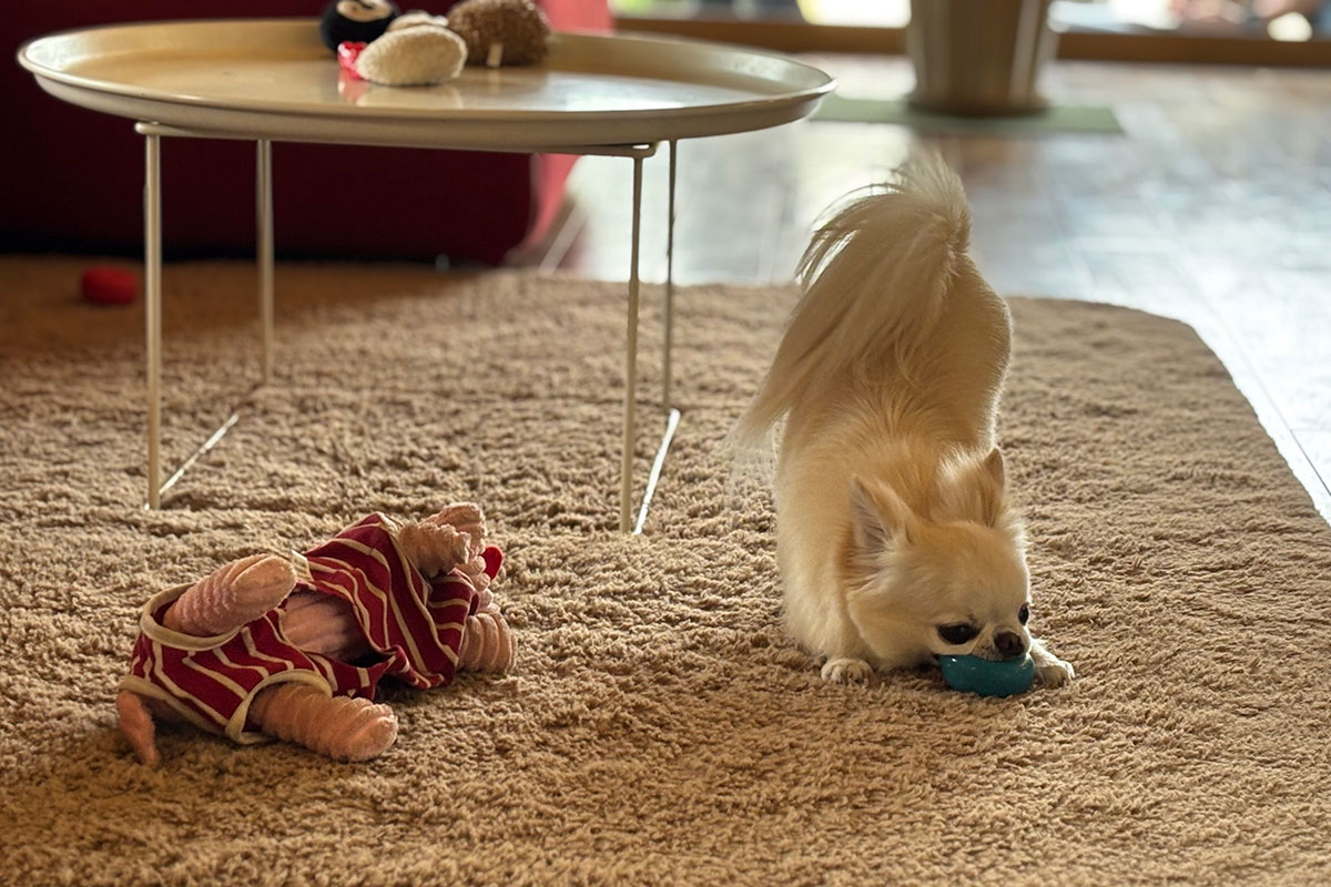 無垢の床は滑りにくく肉球にやさしい質感。漆喰壁は調湿効果と消臭効果に優れ、ペット特有のにおいを抑えて、家族みんなが心地よく過ごせる空間をつくります。
