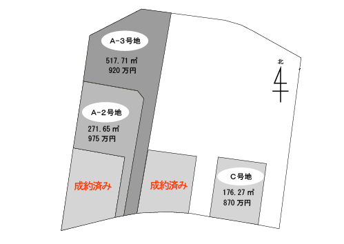 | A-3号地 | 920万円 | 517.71㎡ | 156.60坪 |