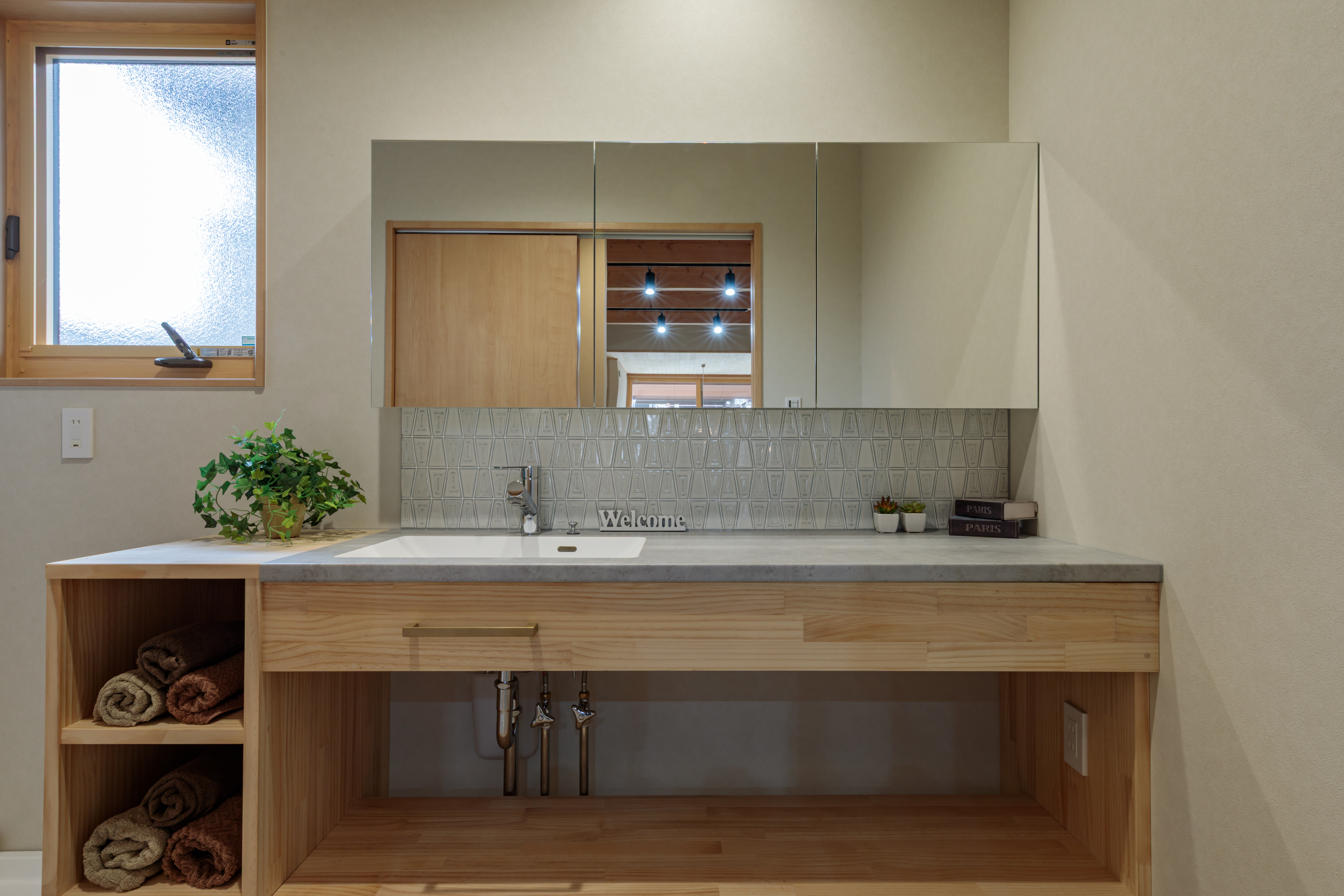 「二人並んでも大丈夫。」広々としたカウンターと大きな三面鏡は、忙しい朝の強い味方。お子様と並んで歯磨きをしたり、椅子を置いてゆっくりメイクを楽しんだり。ゆとりの広さが、家族の笑顔を引き出します。