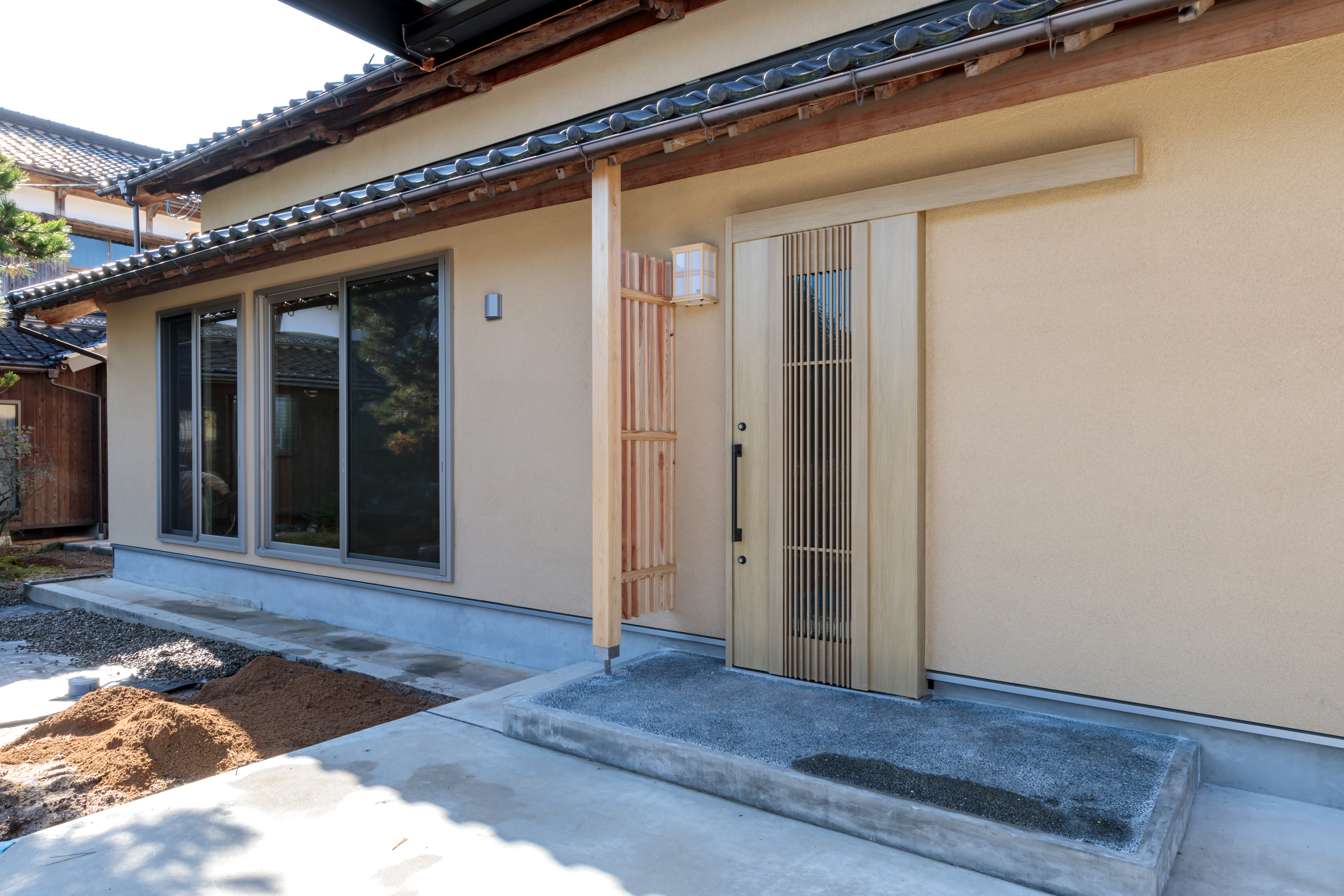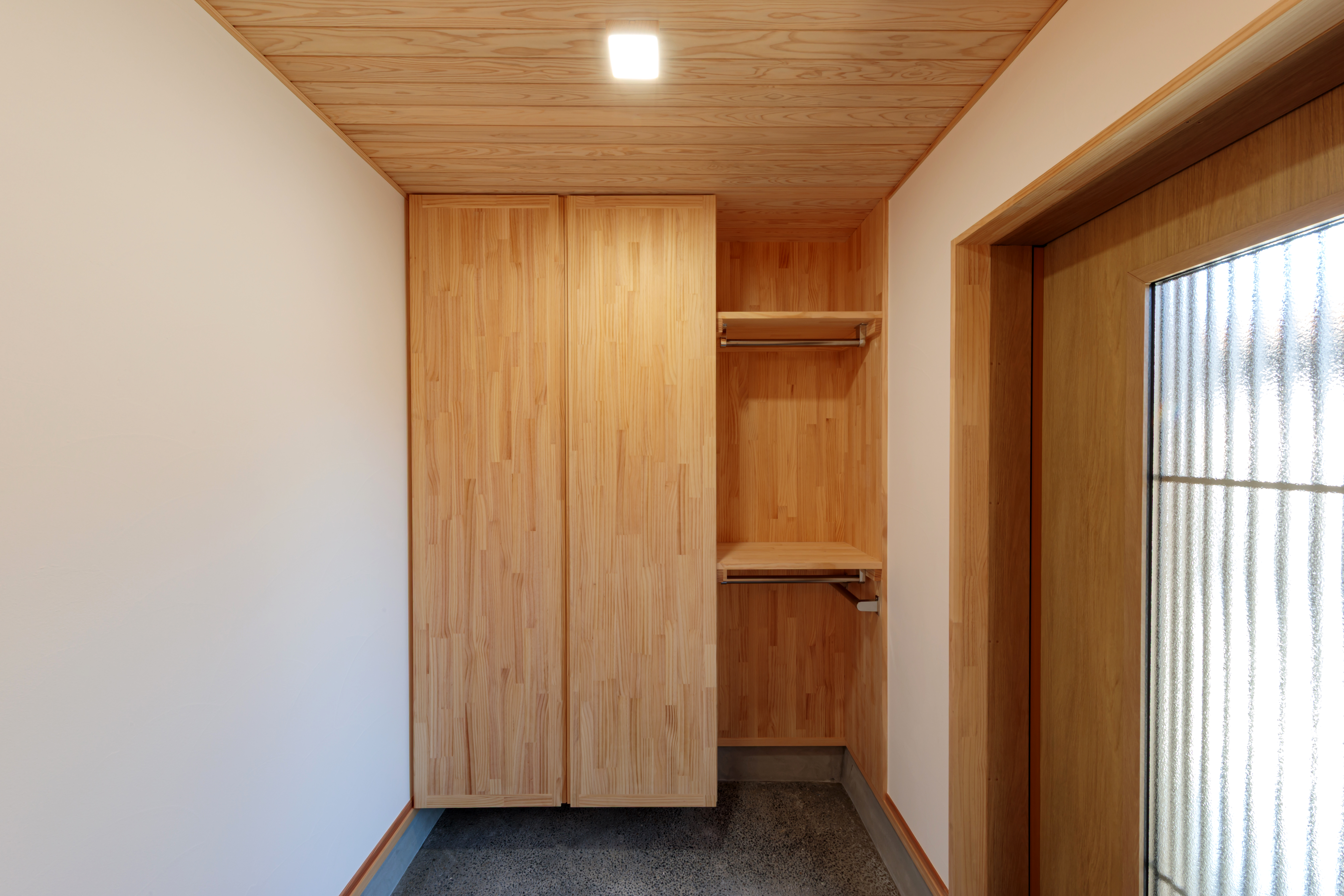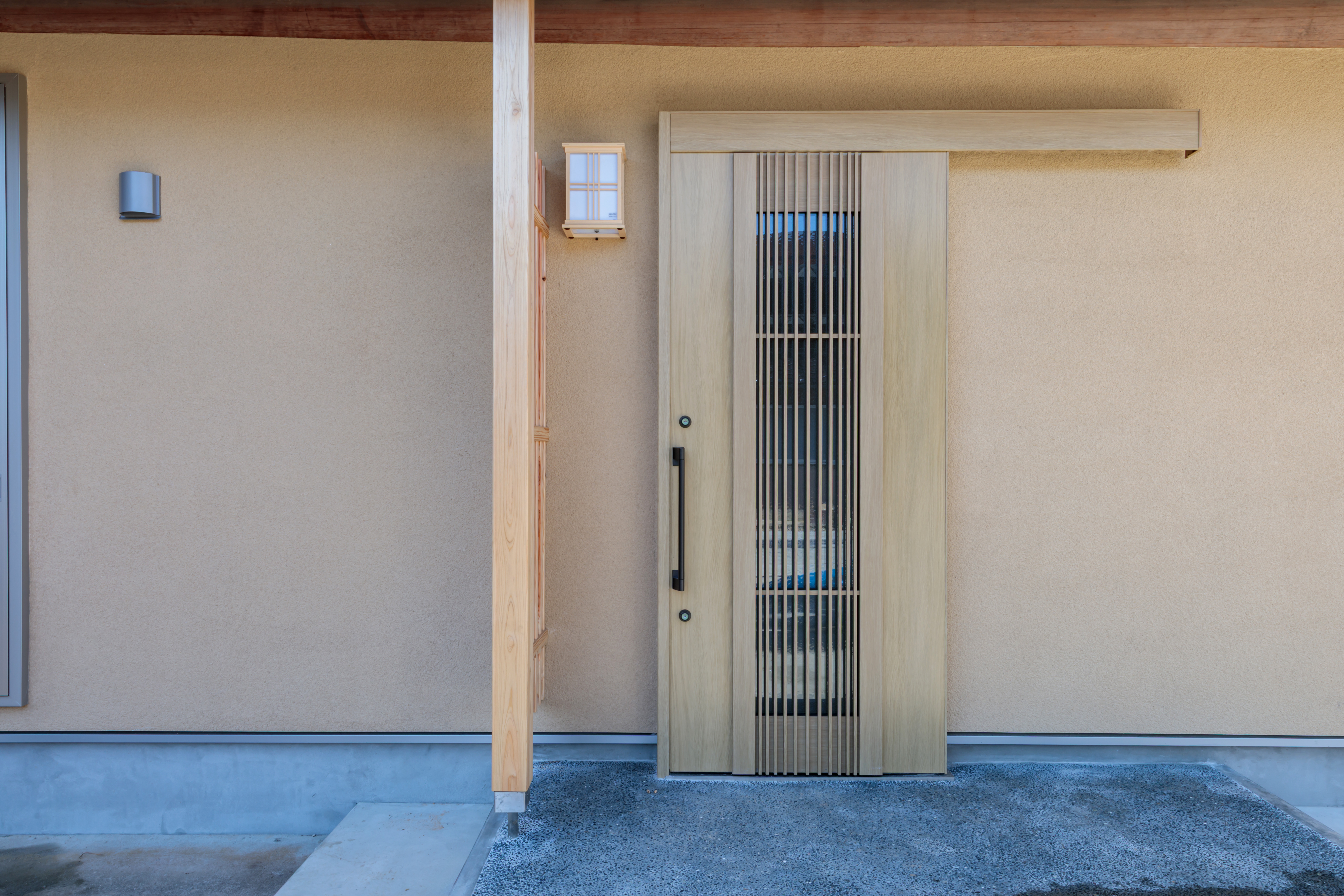 木の温もりを感じる新しい引戸が、帰ってくる家族を優しく迎え入れます。