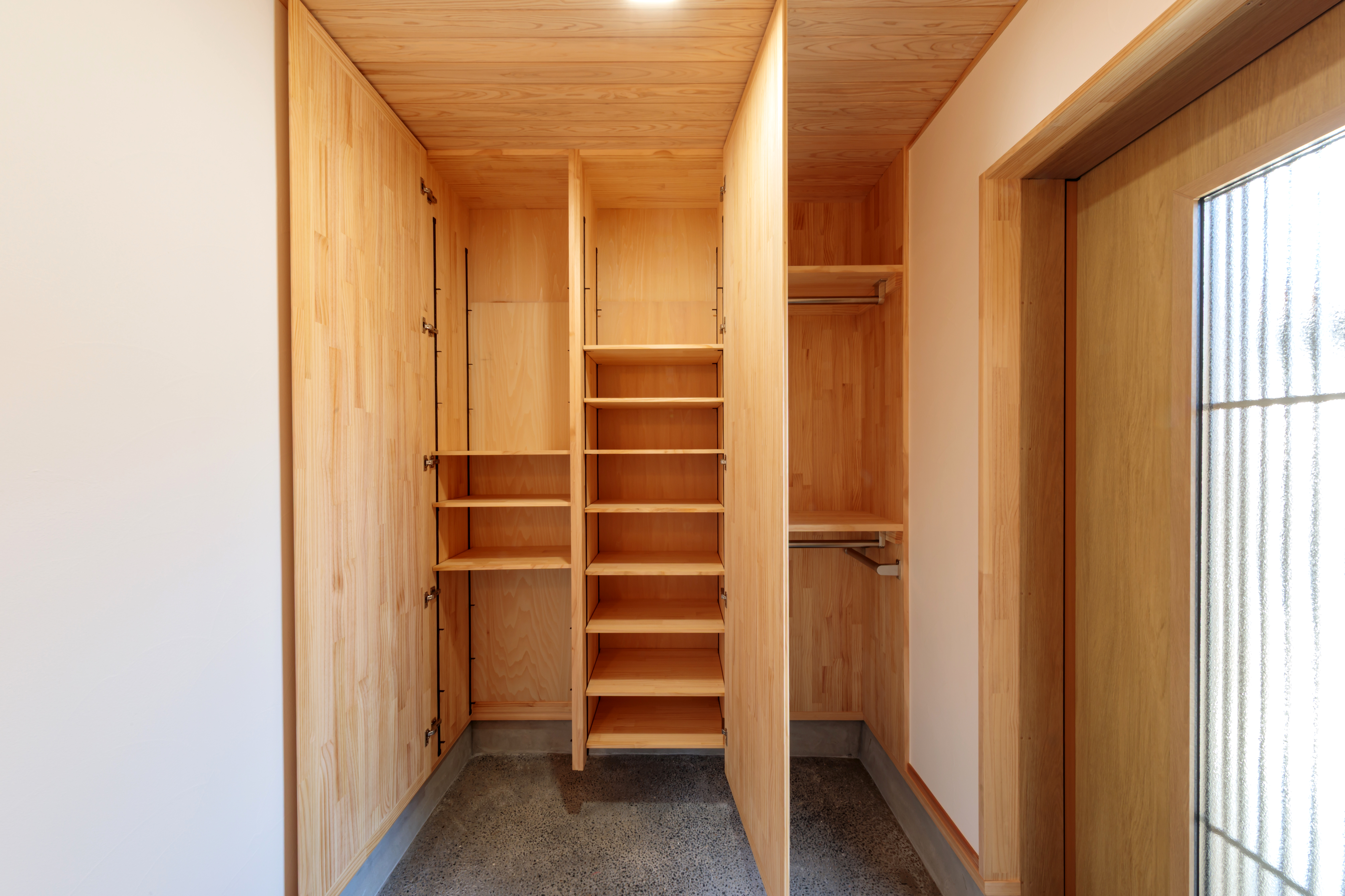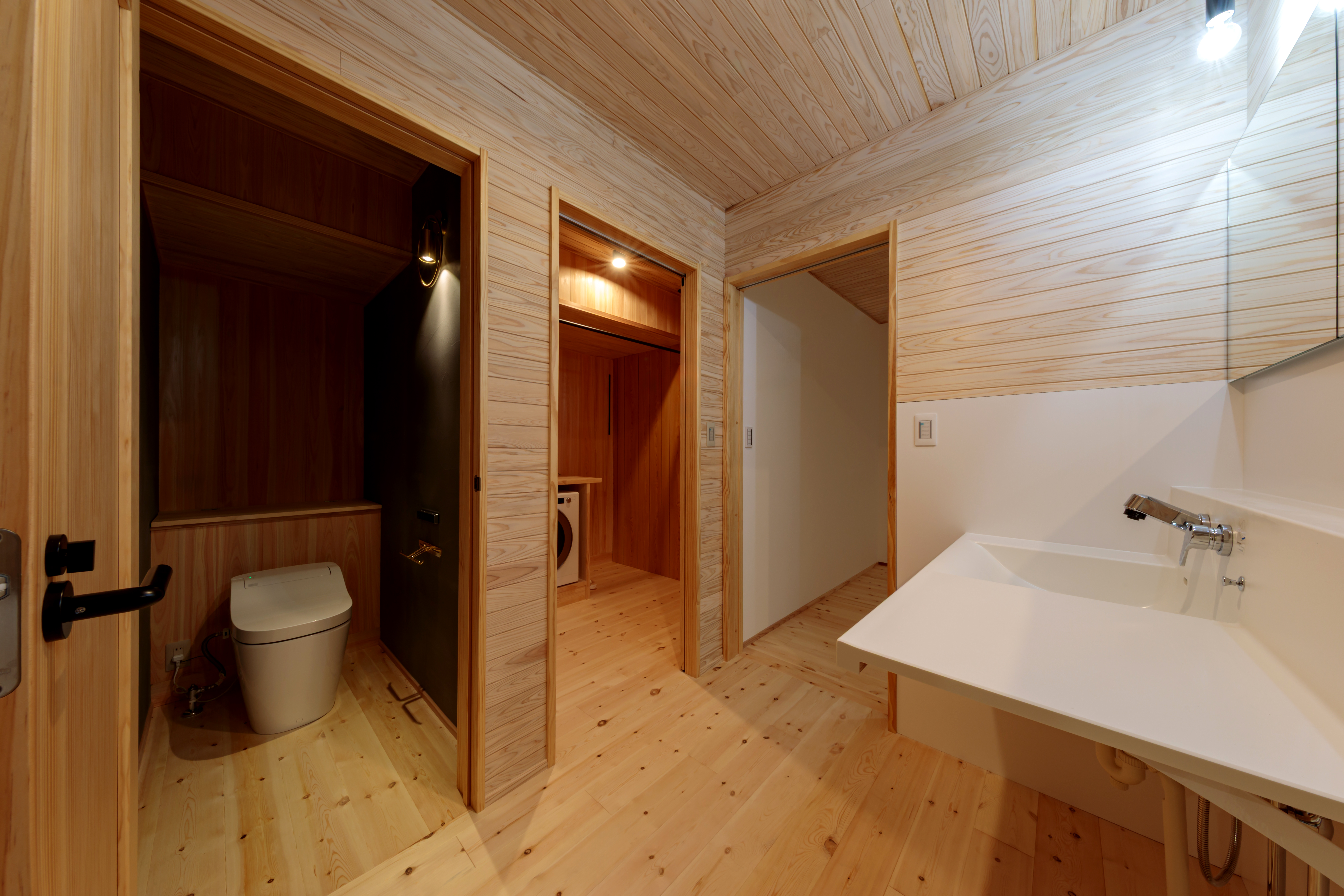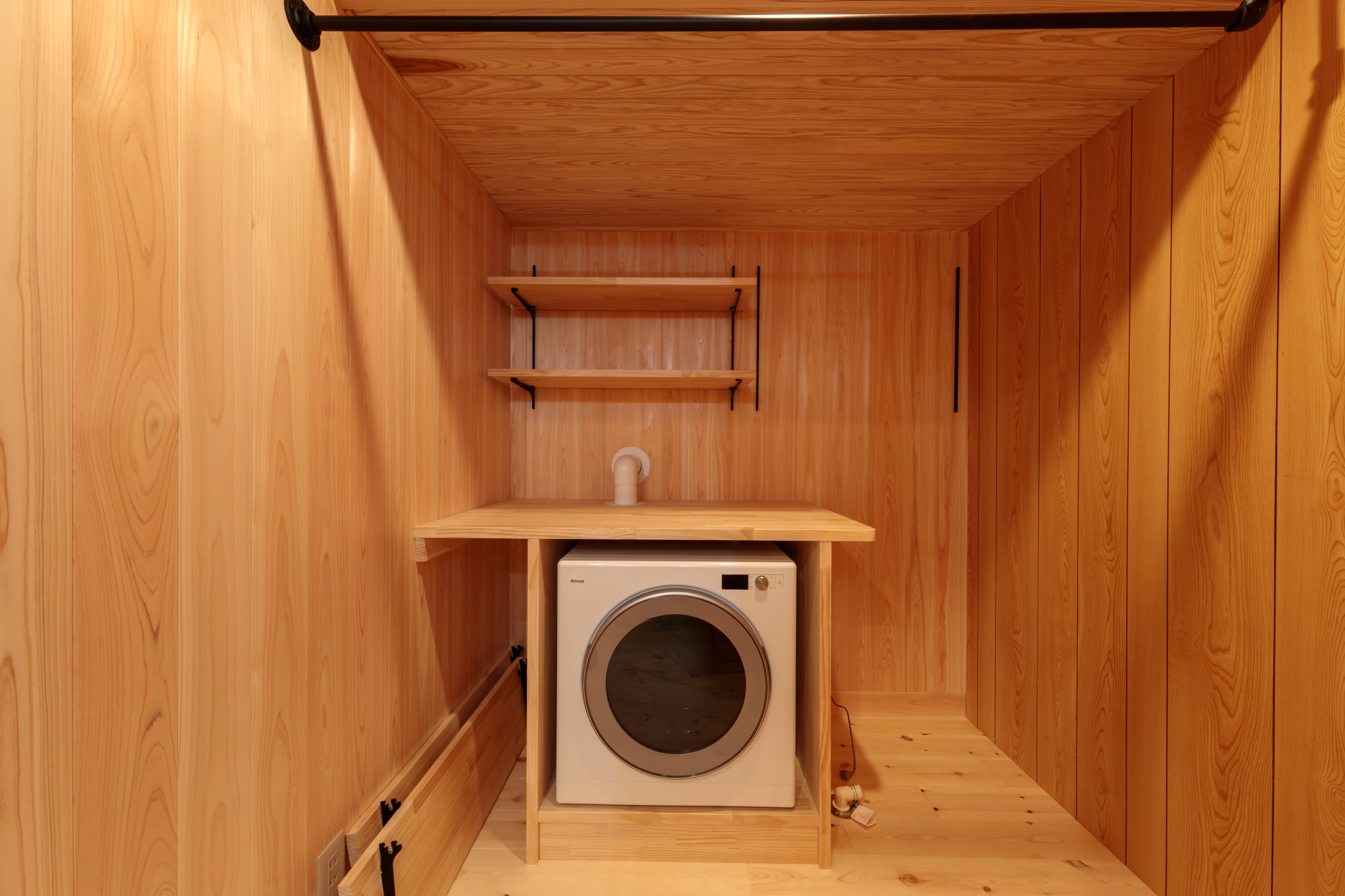 ランドリールームも木の香りいっぱいの空間。癒されながら家事ができます。