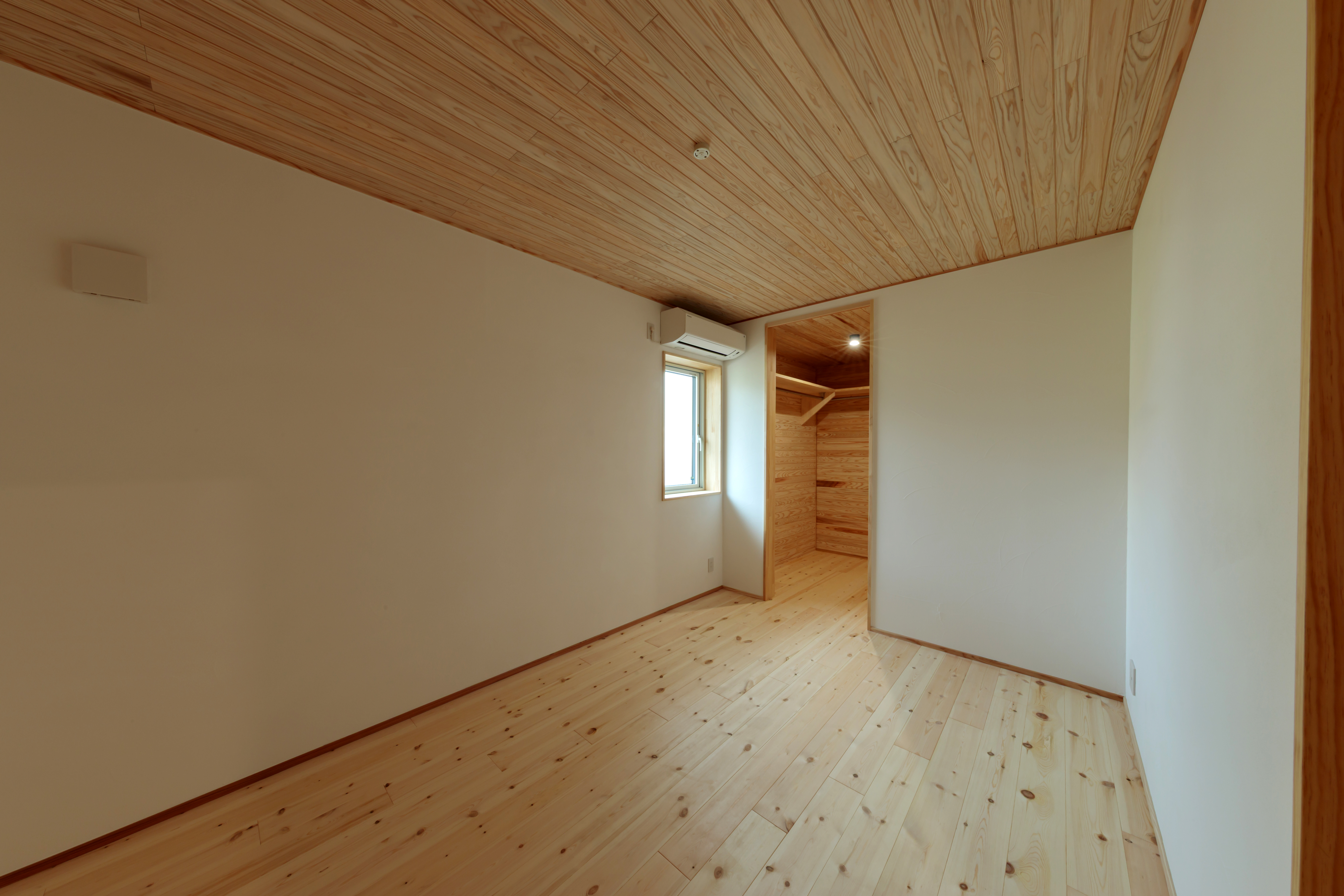 ウォークインクローゼットを備えた寝室。すっきりと整う場所で1日の疲れを癒します。